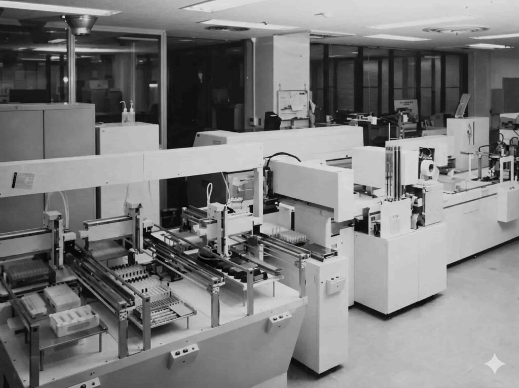 In 1975, Itoh Denki (Ito Electric Manufacturing), 伊藤電機製作所, was entrusted with the maintenance of the AutoChemist automated analyzers. At the time, automated analyzers were large and highly complex systems. Taking on this engagement from Japan Medical Laboratory (JML) became a defining moment for Itoh Electric, steering the company toward laboratory automation services and establishing an enduring commitment to product improvement and original system development.