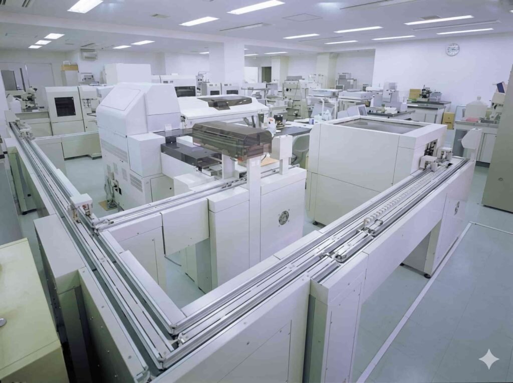 IDS’s open and modular specimen transport system gained U.S. attention through its deployment at Shimane Medical University, where it was connected to Coulter analyzers and demonstrated interoperability with third-party systems.
